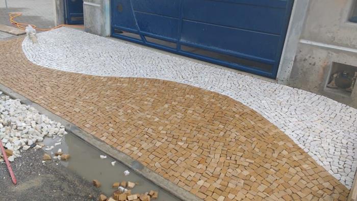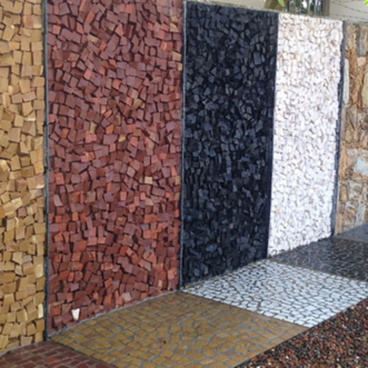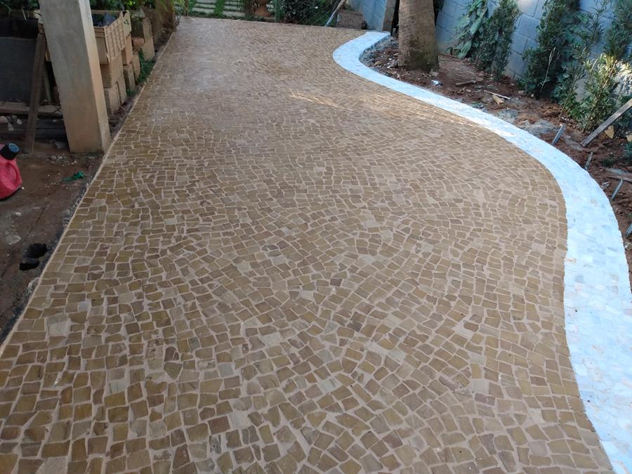 Realizo diversos formatos e desenhos rejuntando com o mesmo tom das pedras